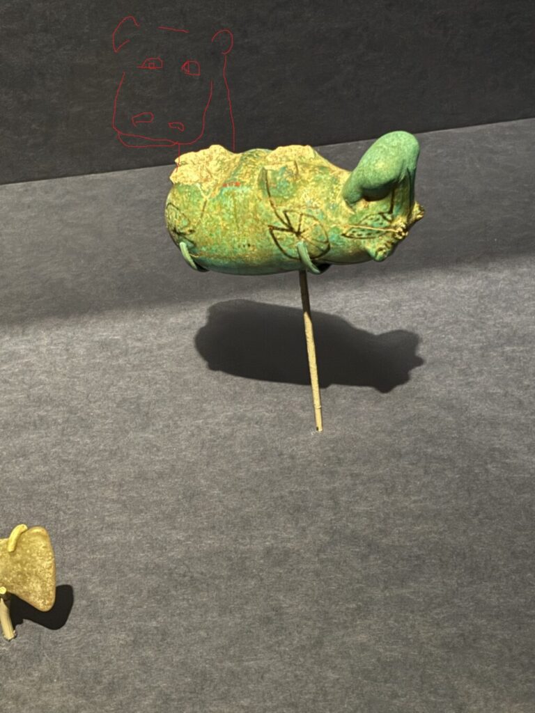 しかも、欠けてる部分は、欠品ではなく、足の部分で、埋葬する際に、暴れまわるカバなのでわざと足を壊して埋葬していたとか!!意味が深い・・・・・ごめんなさい、エジプト展さん。。。。事務員さんにはきちんと訂正しておきましたので…。