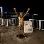 夜は建築士さんと港を散歩しました。具志堅選手の銅像がありました!